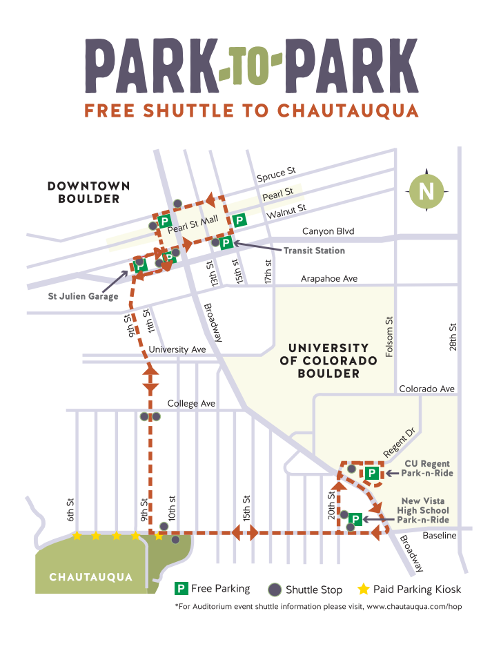 On Saturday, May 27, the City of Boulder begins service for the free Park-to-Park shuttle service to/from Chautauqua Park from two free satellite parking lots and downtown Boulder. The shuttle is a convenient, fast and stress-free way to access Chautauqua while reducing vehicular impacts to the site and surrounding neighborhood.