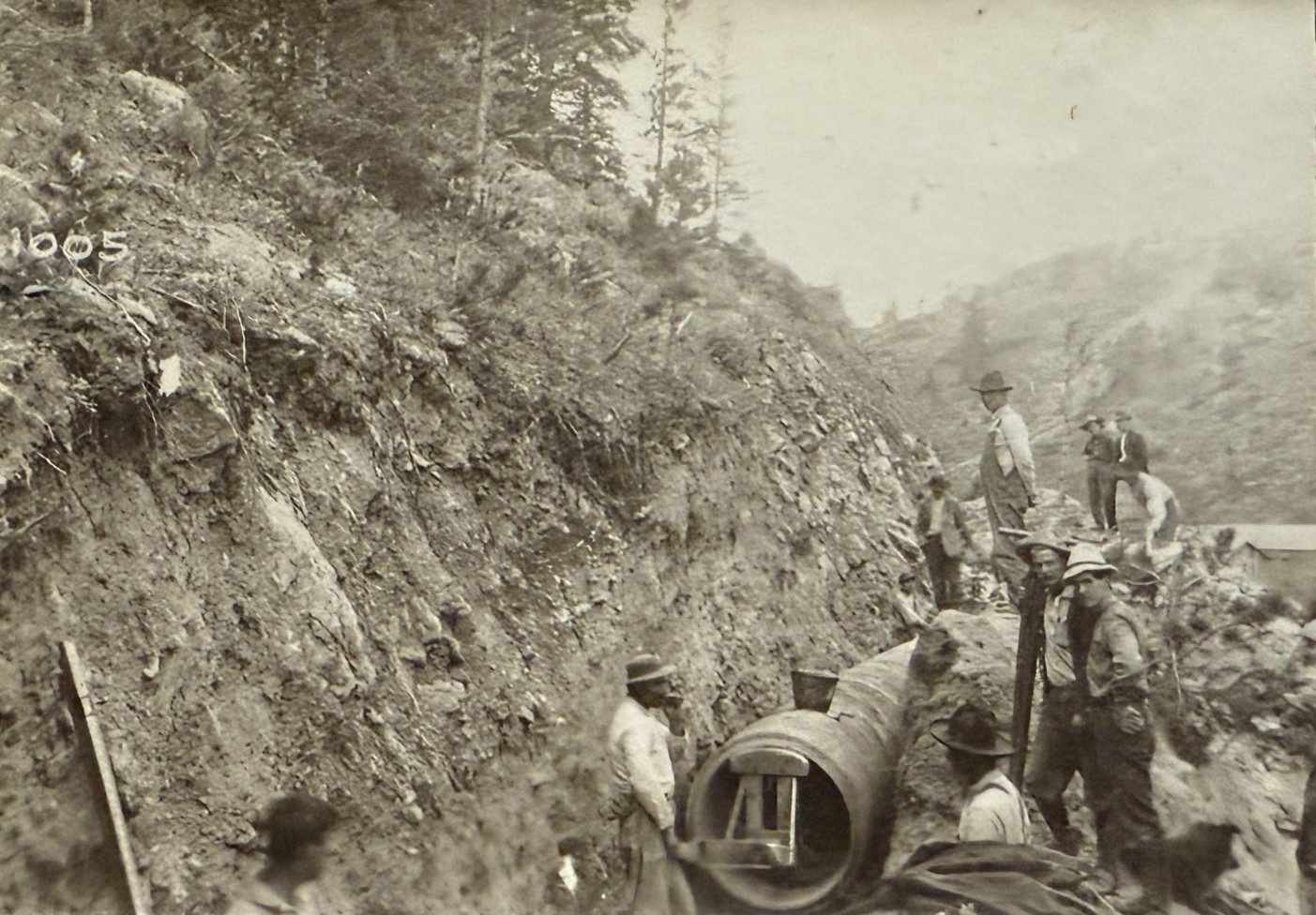 The pipeline was constructed to move water by gravity from Barker Reservoir through the mountains to downstream facilities. Built across rugged terrain, the system required tunneling, steep alignments and durable materials to withstand mountain conditions. This infrastructure was designed to carry water efficiently over long distances while taking advantage of elevation changes to support hydroelectric generation.