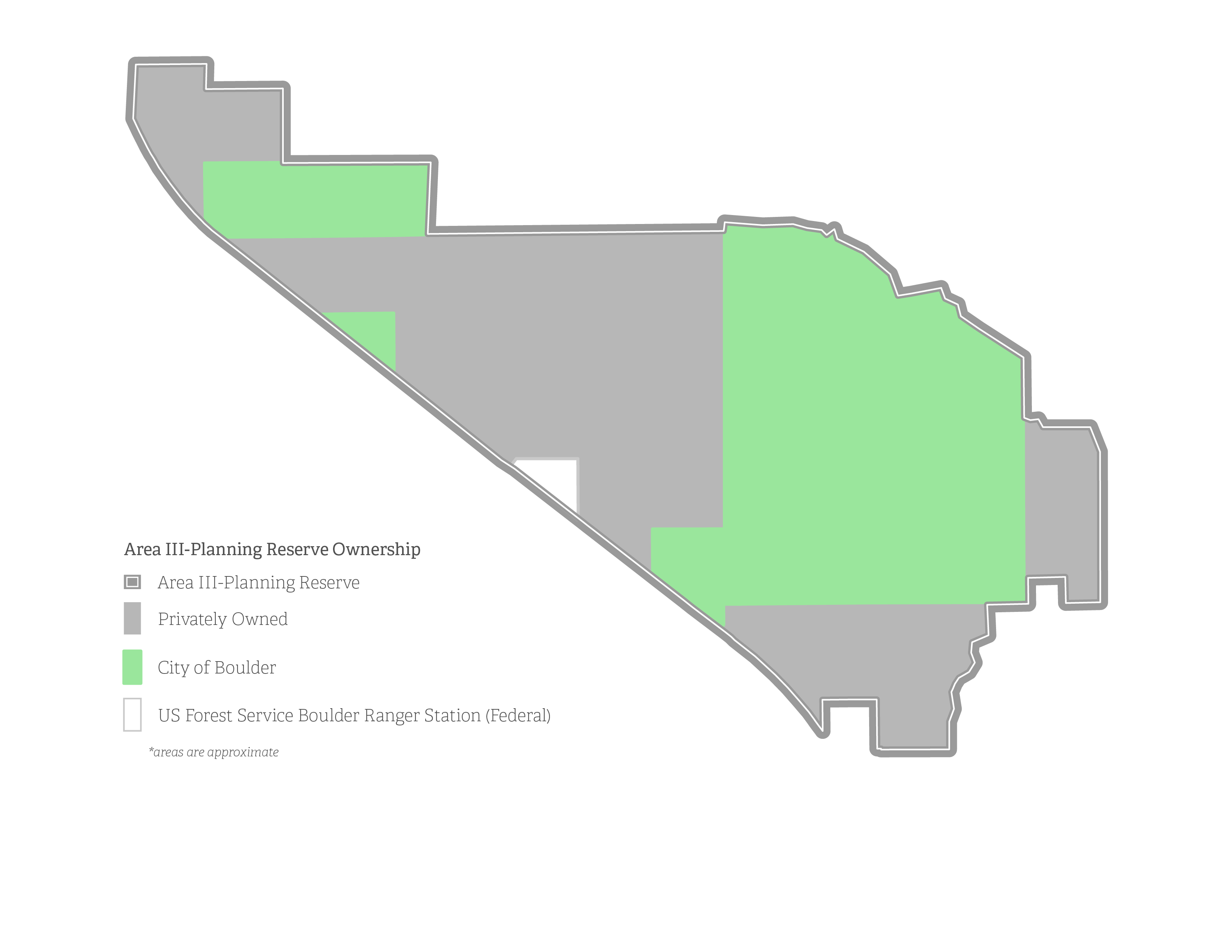 Within Area III, the Area III-Planning Reserve (Planning Reserve) is an approximately 500-acre area located on the north side of Boulder. Identified in the 1993 Area III Planning Project, the Planning Reserve is the only portion of Area III where the city maintains the option of future Service Area expansion. This expansion will only be considered if there are priority community needs that cannot be met within the existing Service Area (Areas I and II).