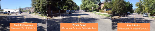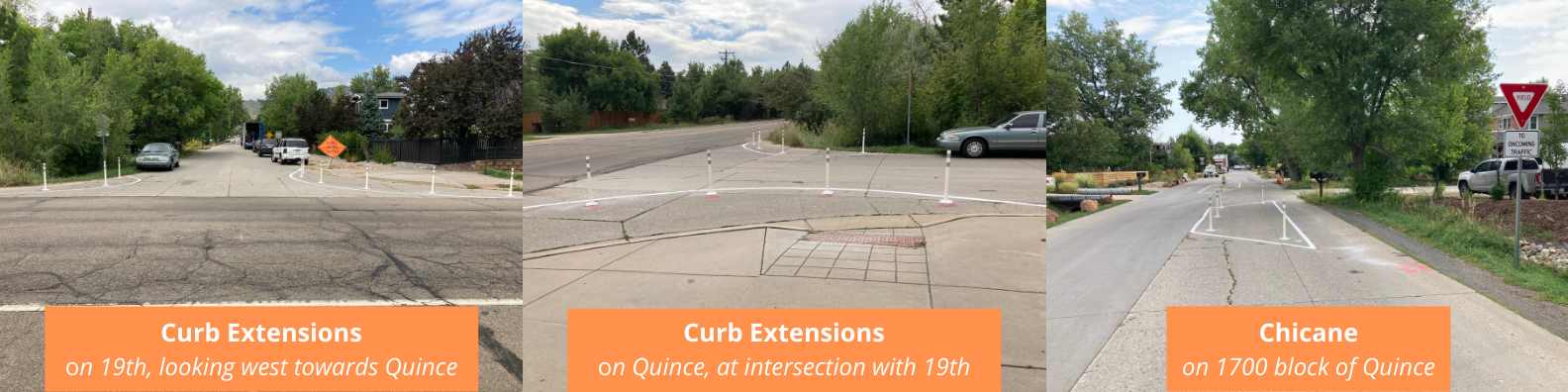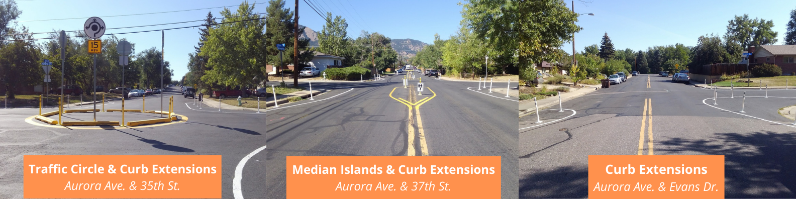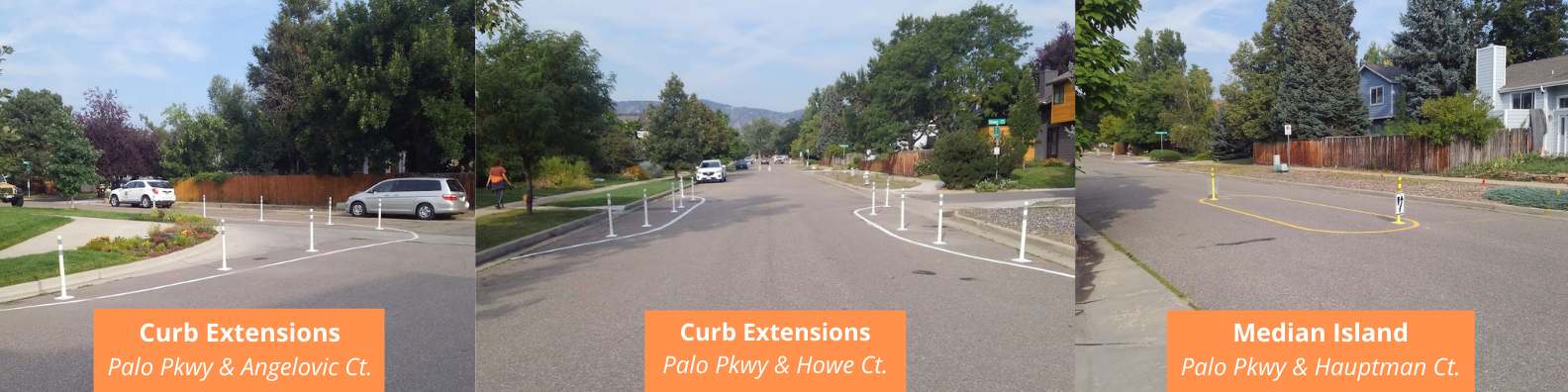 The projects have been installed because they change the street design in ways that can help reduce speeding. Speeding is one of the top causes of severe traffic crashes in Boulder, and reducing speeding requires two approaches: lowering the residential speed limit to 20 mph, which the city did last year, and changing the street design itself.