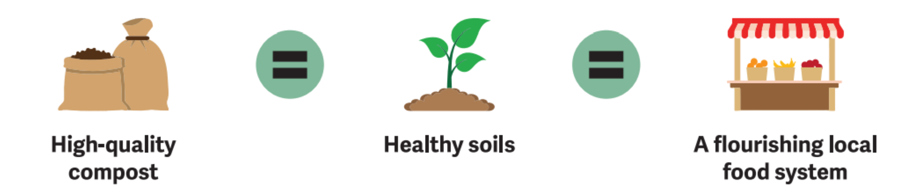 Composting supports our local ecosystem by creating rich, nutritious soil. Healthy soil absorbs water and carbon, increases biodiversity and improves our local food system.