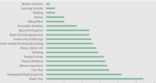 Youth and community members also shared which recreation activities they would most like to enjoy in the future park. These activities will also drive design, so the future park is a place neighbors frequent and feel like they belong.